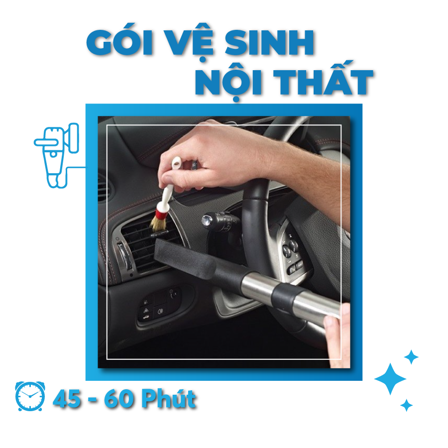 – Vệ sinh Taplo, bảng điều khiển, hộp để đồ, ghế, sàn xe, khoang cốp, tapbi cửa, thảm trải sàn bằng dung dịch cao cấp… (Có tháo ghế)
