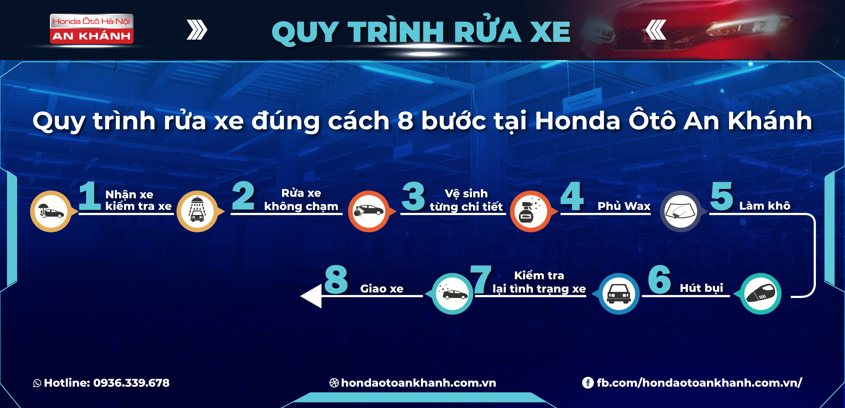 Quy trình rửa xe 8 bước nghiêm ngặt, tỉ mỉ để tránh tình trạng xước dăm hoặc sảy ra bất kỳ lỗi nào trong quá trình rửa xe.
